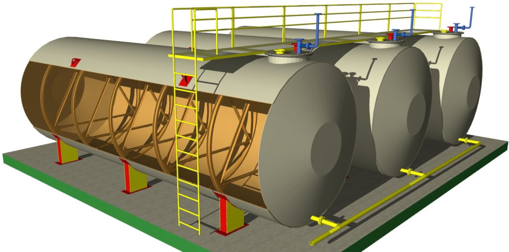 Горизонтальные резервуары – это емкости, используемые для хранения практически любых жидких веществ. Они изготавливаются из стали, поверх которой наносится защитный